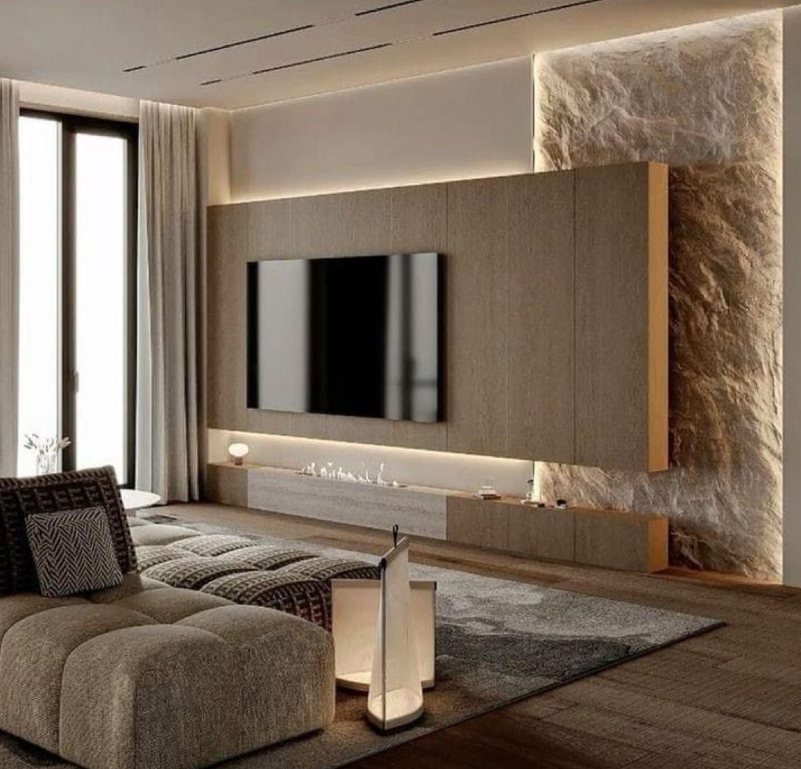Custom cabinetry, TV walls, electric fireplaces, panels.